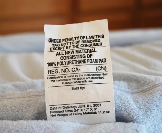 LawLabel-出口美国的床垫/枕头/沙发申请法律标签注册号URN