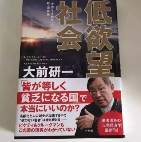 针对这一现象,日本著名管理学家大前研一先生写了一本书,叫《低欲望社会》,副标题叫“胸无大志的时代”。