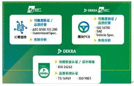 德凯宜特提供全方位的车用电子验证平台,涉及机构部件/电子部件领域、ECU电子控制模块领域、PCB /PCBA电路板领域和LED车灯领域的验证,并提供可靠性试验、失效分析、材料测试、化学分析以及电磁兼容测试